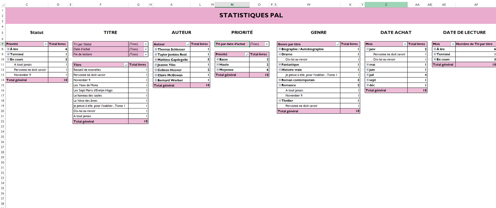 • Interface simple et graphique : Facile à utiliser, même si vous n’êtes pas un expert en Excel ! Il vous suffit de renseigner vos livres et de faire quelques clics pour obtenir une vue d’ensemble.